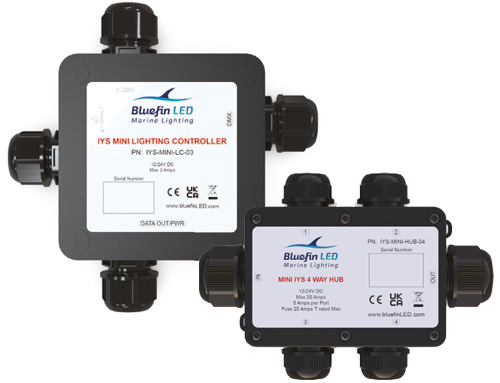 Der Mini IYS 4 Way Hub erweitert das System um abgesicherte Ausgänge für bis zu vier Piranha Pro-Link Series RGBW-Leuchten und ist auf bis zu vier Hubs (insgesamt 16 Leuchten) erweiterbar