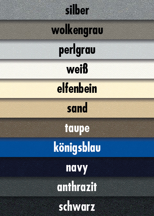 - sehr leicht, nur ca. 300 g/m² (silber 330 g/m²)