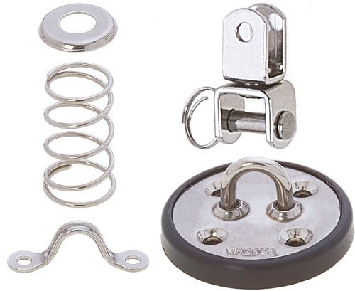 Decksmontageteile für Viadana Violinblock – hochwertiges Zubehör für langlebige und zuverlässige Montage im Decksbereich. Passend für Kugellager-Violinblöcke mit Augbügel, Wirbel, Feder und Abdeckscheibe. Ideal für Segelboote und anspruchsvolle Anwendungen im Wassersport.