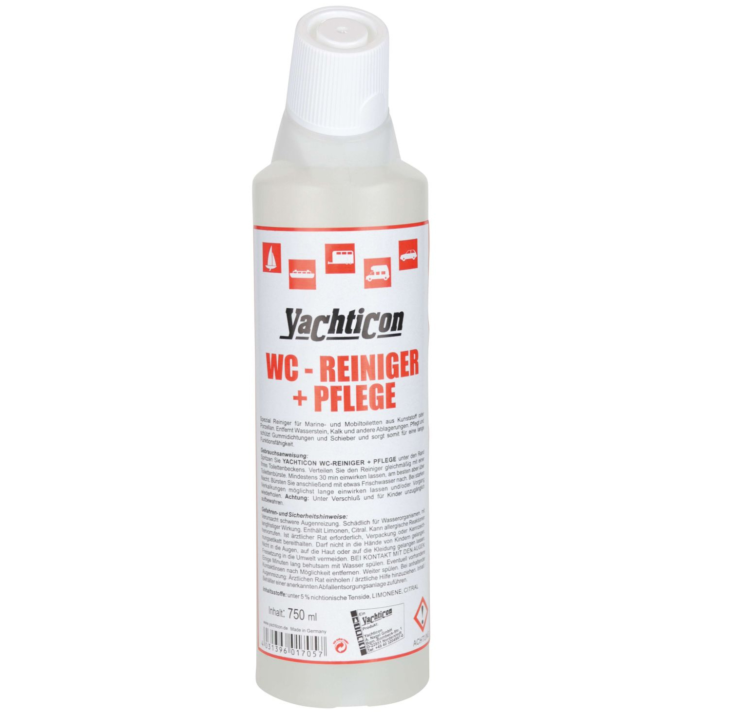 Spezial WC Reiniger für Marine- und Mobiltoiletten aus Kunststoff oder Porzellan. Entfernt zuverlässig Wasserstein, Kalk und hartnäckige Ablagerungen. Wirkt desinfizierend, pflegt Dichtungen sowie Schieber und unterstützt eine dauerhaft hygienische und sichere Funktion.